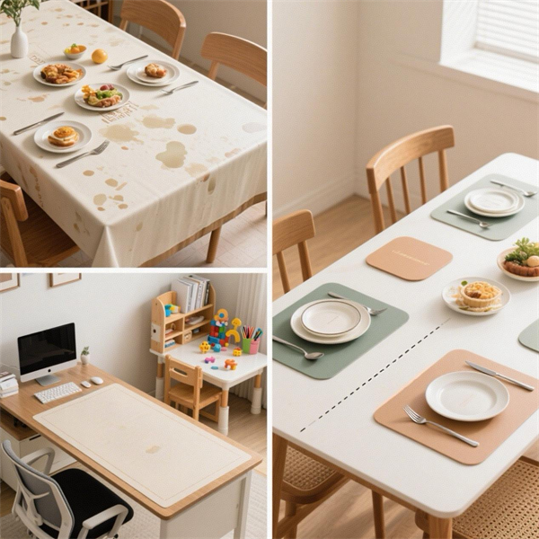 In termini di scenari di utilizzo, atavolo tavoloha una gamma di applicazioni più ampia. Si riferisce al tappeto posato su vari tavoli come tavoli da pranzo, banchi di uffici e tavoli da studio per bambini, con l'obiettivo di proteggere il tavolo da graffi, macchie, alte temperature, ecc., Servendo anche uno scopo decorativo. Ad esempio, un tappetino da ufficio può enfatizzare la resistenza all'acqua e la resistenza all'usura, mentre una sala da pranzotavolo tavoloIn cucina si concentra maggiormente sulla resistenza al calore e sulla pulizia facile.